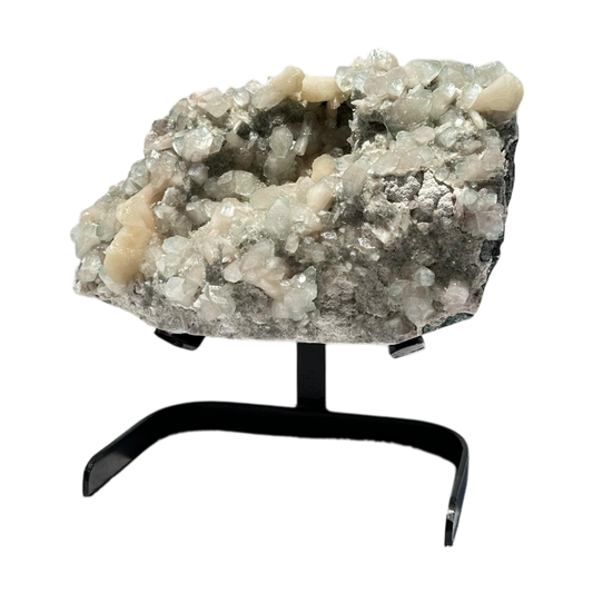 Green Apophyllite with Stilbite on Micro Heulandite Matrix