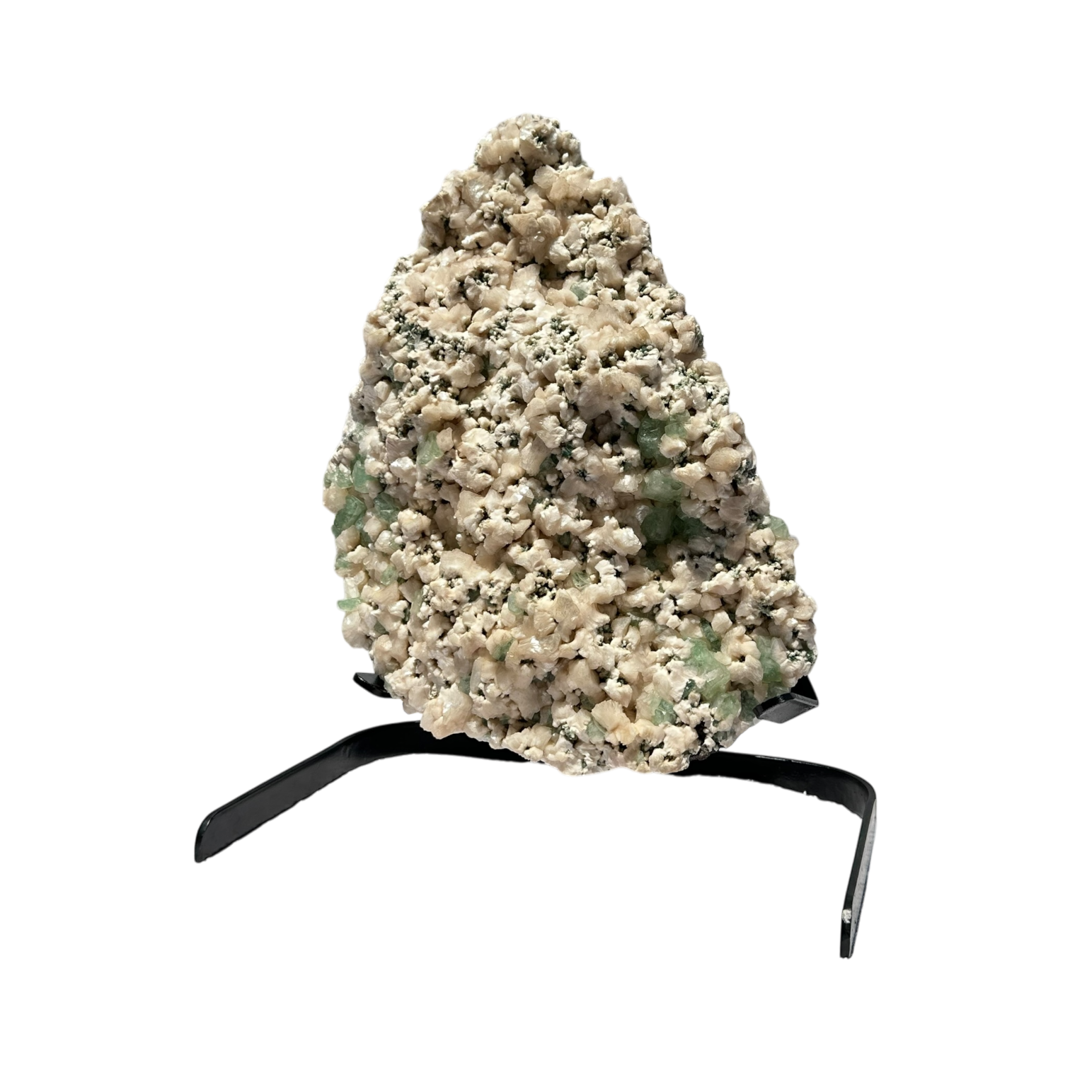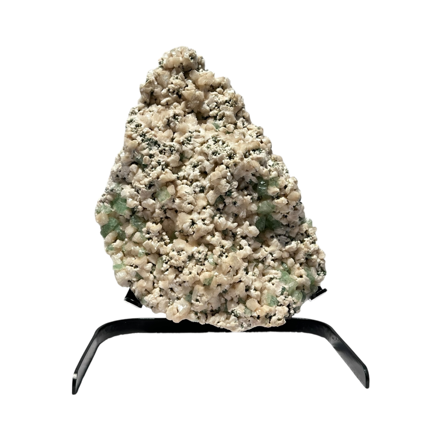 A nice specimen of green apoplite with petal still bite on a skeletal calcitony matrix from the Jalgaon quarries in Maharashtra India