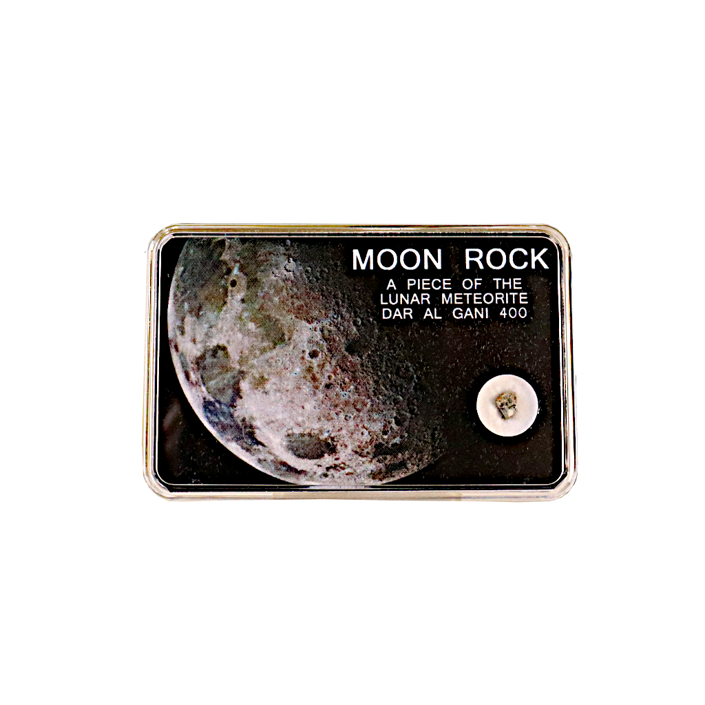 The meteorite fragment enclosed with a weight of 10 mg is an authentic moon rock according to the standards of the Meteoritical Society, London. The fragment was part of the 1.425 kg lunar meteorite that was found in Libya on March 10th,1998. Authenticity is guaranteed by the International Meteorite Collectors Association. IMCA Member #0818 - www.imca.cc