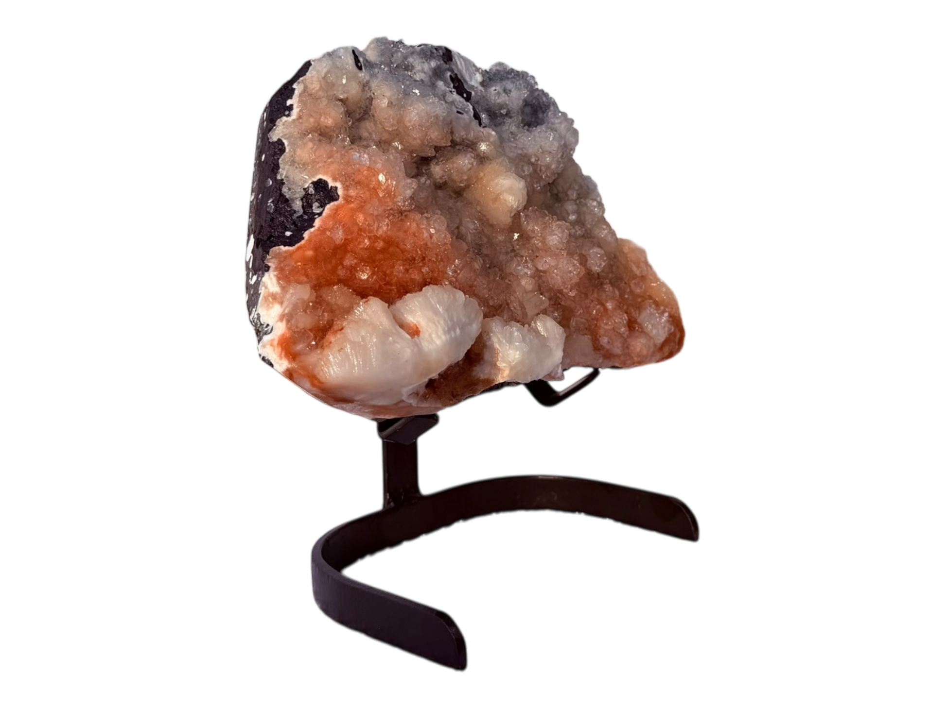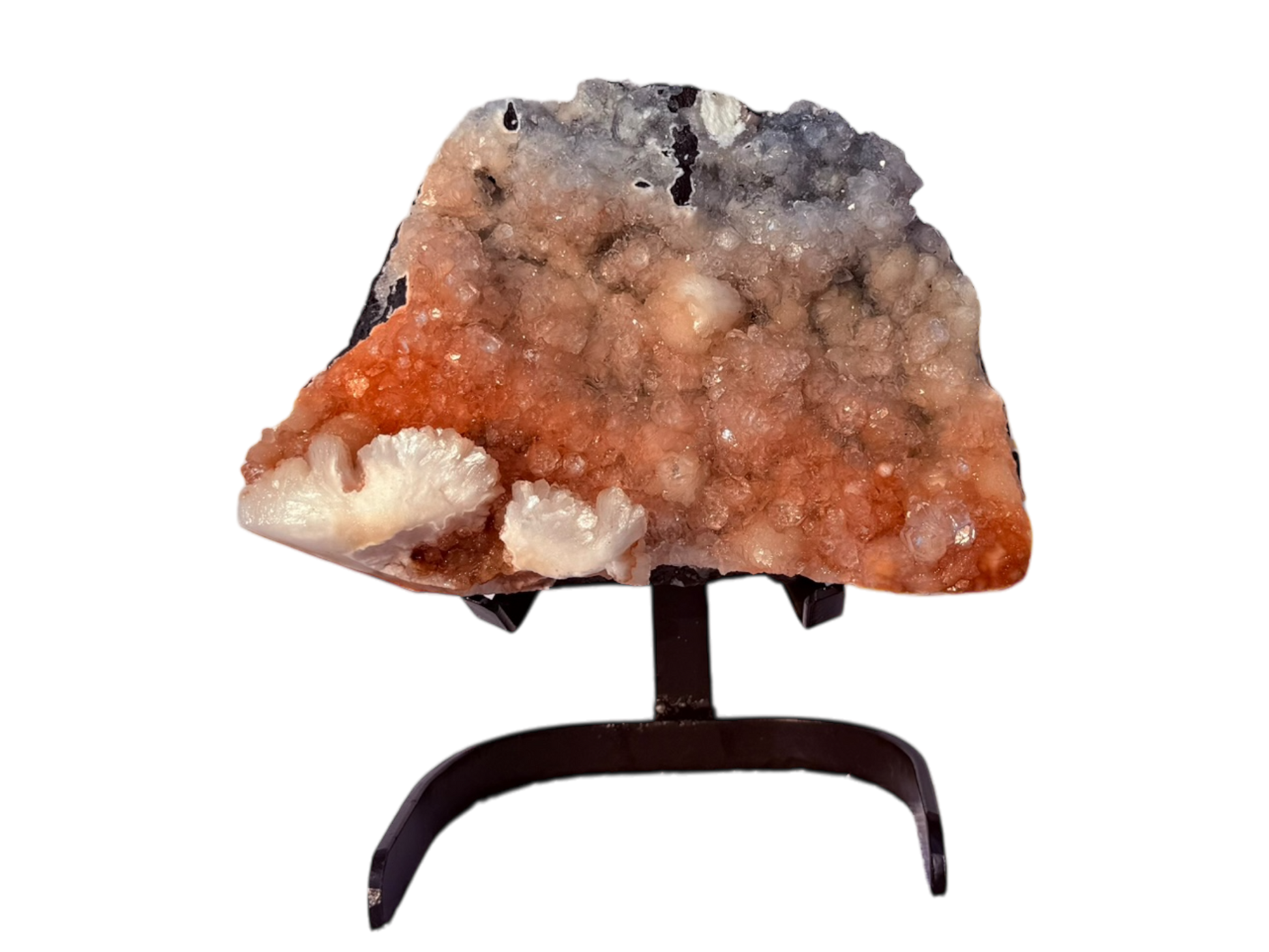 A beautiful specimen of apophyllite and stilbite with a variation of colours and hues going from light transparent to a bright red. this gradient of colours offered by nature is quite stunning.