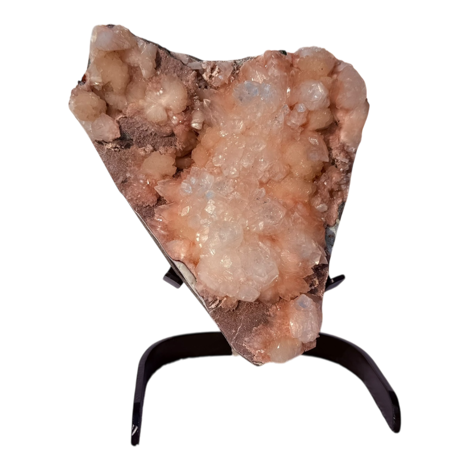 This beautiful vertically aligned specimen of pink / red apophilite on a petal silbite matrix is quite the aesthetic specimen bringing an earthen hue to any display