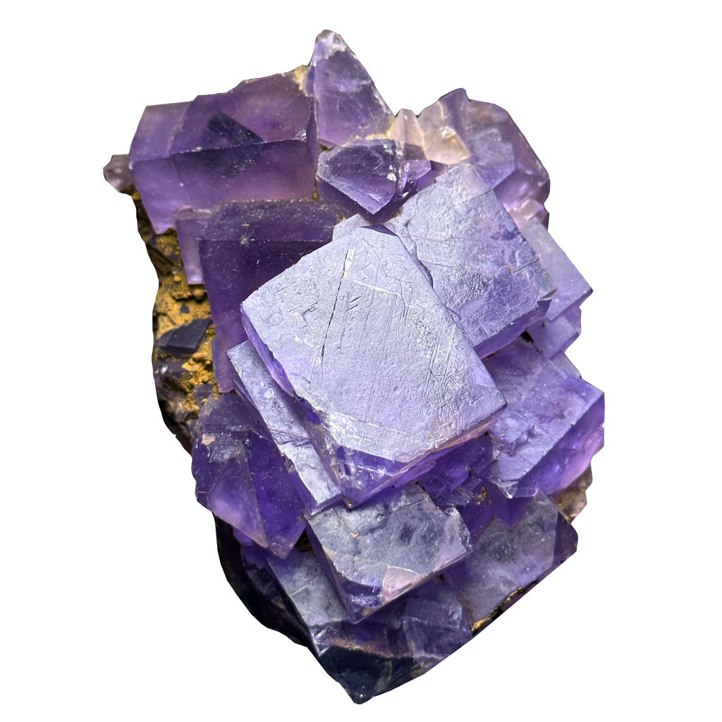 Purple fluorite is a captivating mineral specimen prized for its stunning violet hue and beautiful crystalline formations. It is a type of fluorite, a common halide mineral composed of calcium fluoride. The purple variety gets its distinctive color from trace amounts of certain impurities during its formation process.purple fluorite showcases a mesmerizing blend of purple shades, ranging from soft lavender to deep violet. Its transparent to translucent nature allows light to pass through, enhancing its allure. The crystal's structure often forms in cubic or octahedral shapes, presenting an intriguing geometric pattern that catches the eye.Whether arranged on a display stand or placed in a decorative setting, purple fluorite is sure to add a touch of natural beauty and intrigue to any collection or interior space. Its unique coloration and crystal structure make it an alluring addition to mineral displays, providing a conversation piece that captivates viewers and sparks curiosity about the wonders of the mineral kingdom.