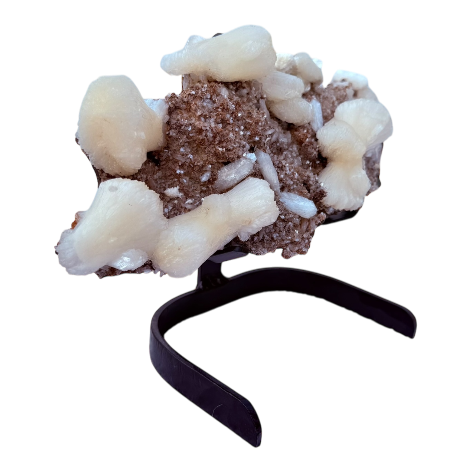 This is a specimen of stillbuild bow ties rising out of a brown microhulonite matrix although the specimen is a medium cabinet size piece it has great contrast with the white peach on Brown Matrix.