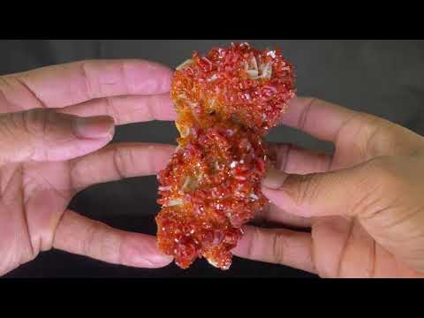 Vanadinite from Morocco is a striking mineral specimen prized for its unique appearance and distinct red-orange color. This mineral primarily consists of lead vanadate chloride and forms beautiful hexagonal prismatic crystals. The rich coloration and well-defined crystal formations make Vanadinite a sought-after collector's item and a popular addition to mineral displays. This Vanadinite specimen originates from Morocco, where it is carefully mined and extracted. The crystals are typically found in association with other minerals, adding to their visual appeal. The Moroccan Vanadinite is known for its high-quality and lustrous appearance, making it an attractive choice for mineral enthusiasts, collectors, and those who appreciate the natural beauty of Earth's treasures. For those interested in the aesthetics and geological significance of minerals, this Moroccan Vanadinite offers a captivating addition to any collection or display.